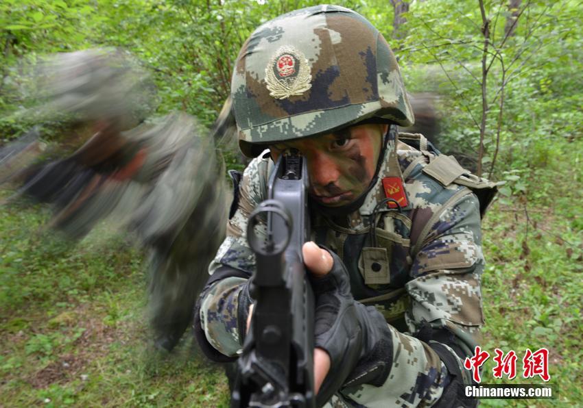 ????近日,吉林邊防總隊機動支隊三大隊的官兵們面圖油彩,手握鋼槍,在近30攝氏度的高溫下,開展野外實戰(zhàn)訓(xùn)練。訓(xùn)練設(shè)置了突遇敵情隱蔽戰(zhàn)斗、快速行進支援前線等多種情況,穿插安排搜索、追擊、捕殲等多個軍事科目,設(shè)立武裝奔襲、圓木越野、擒敵配套等競賽項目,以磨練官兵抗壓能力、堅強意志和拼搏精神。劉豐 攝?
