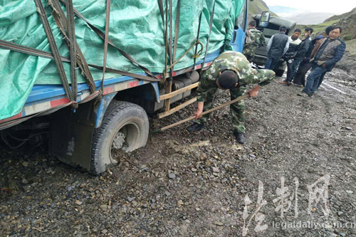 ????連日來(lái),受強(qiáng)降雨天氣影響,通往西藏山南市錯(cuò)那縣卡達(dá)鄉(xiāng)道路因山體塌方和泥石流損毀嚴(yán)重,7月23日中午12時(shí),西藏邊防總隊(duì)山南邊防支隊(duì)卡達(dá)邊防派出所接轄區(qū)居民電話報(bào)警稱:商店運(yùn)貨貨車在返回卡達(dá)鄉(xiāng)途中陷入泥潭,請(qǐng)求派出所救援。接到消息后,該所迅速組織官兵趕往現(xiàn)場(chǎng),并持續(xù)關(guān)注道路情況和受困狀況。到達(dá)現(xiàn)場(chǎng)后,邊防官兵立即展開(kāi)救援,用十字鎬挖、用手刨、用人推,經(jīng)過(guò)2個(gè)小時(shí)的不懈努力,最終成功把陷入泥坑的貨車?yán)?。救援結(jié)束后,邊防官兵就近取材把泥坑填平,并設(shè)立警示標(biāo)志,確保后續(xù)車輛順利通過(guò)。現(xiàn)場(chǎng)無(wú)人員受傷,車輛完好。