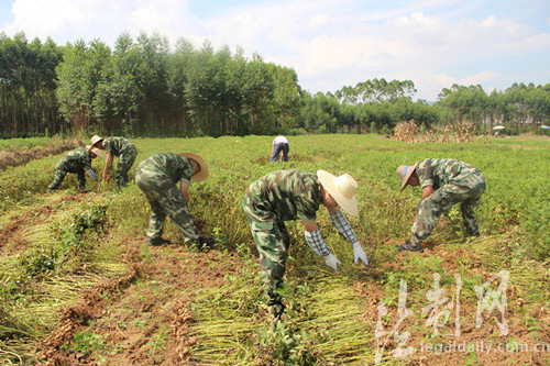 ????近日,廣西邊防總隊(duì)貴港邊檢站組織黨員小分隊(duì)到覃塘區(qū)五里鎮(zhèn)零家村開展“助收進(jìn)農(nóng)家”活動(dòng),幫助缺少勞動(dòng)力的農(nóng)戶零大叔家搶收花生。