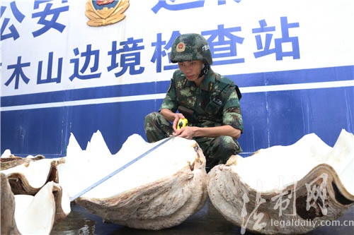 防城港邊防查獲國家一級保護動物硨磲標本3只 總重218公斤