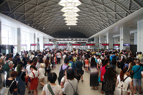 圖為出入境大廳現(xiàn)場(chǎng)