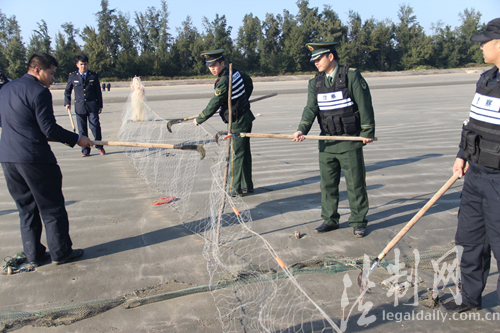 廣西企沙邊防派出所聯(lián)合海洋分局開展海上捕鳥網(wǎng)清除活動