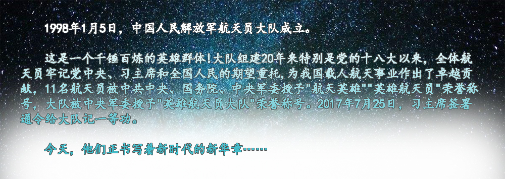 ??? 寧可備而不用,決不用而無備。1998年,我和其他14名戰(zhàn)友一起,懷著對載人航天事業(yè)的無限熱愛和憧憬,義無反顧地投身這一承載著中華民族千年飛天夢想的偉大事業(yè)。我先后入選神十、神十一飛行任務(wù)乘組梯隊(duì),但每一次都與飛天失之交臂。直到今天,我和戰(zhàn)友們一樣,還在堅(jiān)持不懈地開展訓(xùn)練。因?yàn)槲抑溃瑹o論是否執(zhí)行飛行任務(wù),任務(wù)的成功就是我的成功,戰(zhàn)友在天上的表現(xiàn)就是我的表現(xiàn),我愿永遠(yuǎn)做筑夢九天的基石,為建設(shè)航天強(qiáng)國當(dāng)好陪練,守望初心,堅(jiān)守寂寞。?