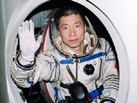 ??? 為了人類的和平與進(jìn)步,中國人來到了太空。2003年10月15日,我搭乘神舟五號飛船,在太空飛行14圈,歷時(shí)21小時(shí)23分,完成了中國首次載人航天飛行。雖然是獨(dú)自在太空飛行,但一想到億萬祖國人民翹首以待,我覺得不是一個(gè)人在飛。于是我拿起太空筆,在工作日志的背面寫上了這樣一句話:“為了人類的和平與進(jìn)步,中國人來到了太空”,并在艙內(nèi)鏡頭前向祖國人民、世界人民展示?!盀榱巳祟惖暮推脚c進(jìn)步”,是中國發(fā)展載人航天事業(yè)的初衷,“中國人來到了太空”既描述了一個(gè)歷史時(shí)刻,也表達(dá)了我為祖國航天事業(yè)感到無比自豪的心情。?