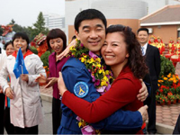 ??? 漫步太空、紅旗永駐。2008年9月27日16時(shí)43分,浩渺太空,敞懷相迎,我在戰(zhàn)友伯明、海鵬的協(xié)助和支持下,打開軌道艙艙門,邁出了中國人在茫茫太空中的第一步。在19分35秒的艙外活動中,我隨飛船一起飛過了9165公里,成為中國“飛得最高、走得最快”的人。然而,成功并不代表成熟,一切仍要從零開始。后續(xù)的空間站任務(wù)、登陸月球……路還很長,挑戰(zhàn)還很多,需要付出和努力的也還很多。對于我來說,沒有停歇的腳步,只有奮進(jìn)的號角。