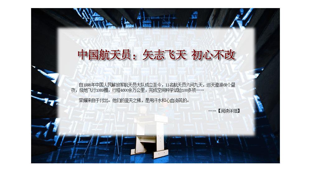 ??? 時(shí)刻準(zhǔn)備著,將祖國的榮耀一次次寫滿太空。在我加入航天員大隊(duì)后,有2件事深深地烙在我的腦海中。一是,一位老華僑在神舟五號任務(wù)成功后,含淚而說的“你們航天員飛得有多高,我們海外游子的頭就能昂多高”。二是,我們面對國旗許下的誓言,“為祖國的載人航天事業(yè)奮斗終身”。我始終以嚴(yán)慎細(xì)實(shí)的精神,以時(shí)不我待的狀態(tài),腳踏實(shí)地、努力學(xué)習(xí)、刻苦訓(xùn)練,以實(shí)際行動踐行諾言,用一生的執(zhí)著與追求,時(shí)刻準(zhǔn)備著,將祖國的榮耀一次次寫滿太空!?