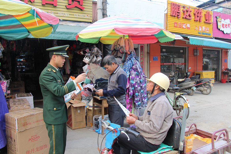 ??? 期間,這個(gè)所組織官兵深入市場、臨街鋪面等人口密集的場所開展防“盜搶騙”宣傳工作,通過發(fā)放宣傳資料、現(xiàn)場講解、張貼宣傳海報(bào)等多種形式,向群眾普及防盜、防搶、防詐騙等常識(shí)。