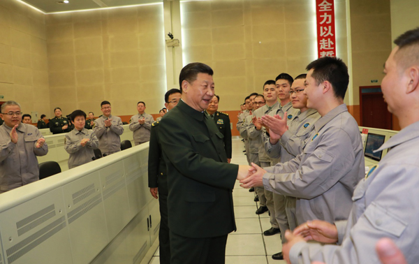 新華社成都2月12日電(記者李宣良、李國利)中華民族傳統(tǒng)節(jié)日——春節(jié)來臨之際,中共中央總書記、國家主席、中央軍委主席習(xí)近平10日來到駐四川部隊某基地,深入發(fā)射工位和技術(shù)廠房,看望慰問部隊官兵,代表黨中央和中央軍委,向全體解放軍指戰(zhàn)員、武警部隊官兵、民兵預(yù)備役人員致以誠摯問候和新春祝福。他強調(diào),要認真貫徹黨的十九大精神,深入貫徹新時代黨的強軍思想,堅持政治建軍、改革強軍、科技興軍、依法治軍,聚焦備戰(zhàn)打仗,加快創(chuàng)新發(fā)展,全面提高履行使命任務(wù)能力,為實現(xiàn)黨在新時代的強軍目標作出新的更大貢獻。