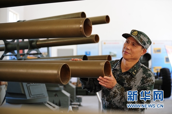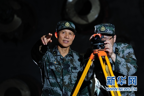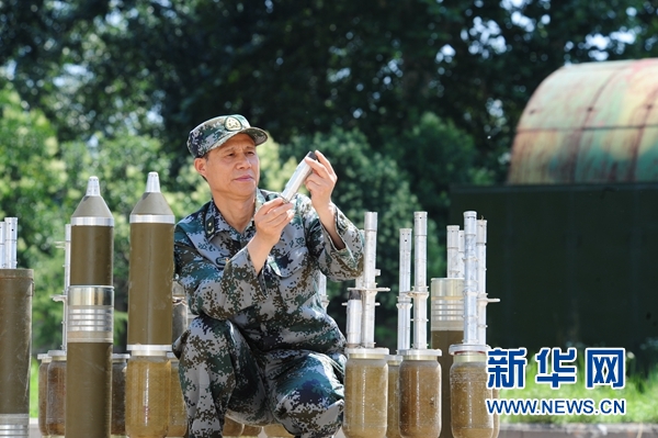 中國工程院院士、軍事科學(xué)院國防工程研究院研究員任輝啟檢查彈體作用情況(資料照片)?! ⌒氯A社發(fā)(侯藝兵 攝)