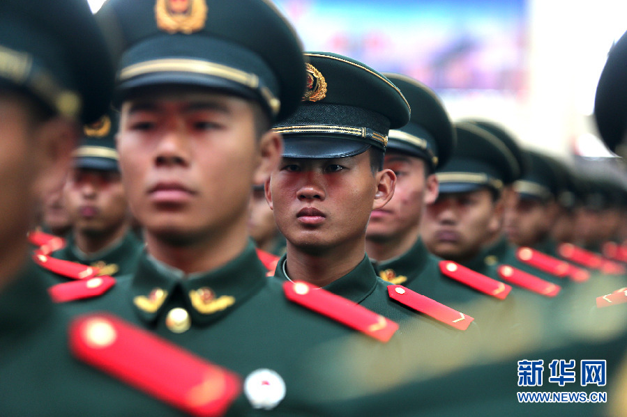 ????資料圖片:授銜儀式上,新兵佩戴上鮮紅的警銜。新華網(wǎng)發(fā)(周煥成 攝)