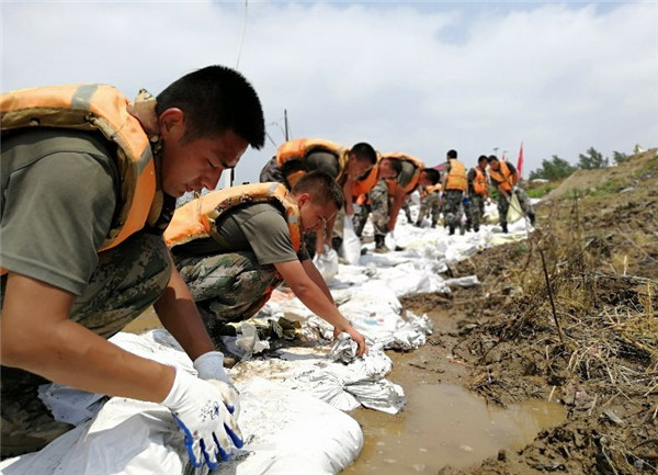 ????第71集團(tuán)軍某旅工兵連官兵在江西九江柴桑區(qū)江洲鎮(zhèn)江新洲堤上展開(kāi)搶險(xiǎn)任務(wù)。新華社發(fā)(郭仁杰 攝)