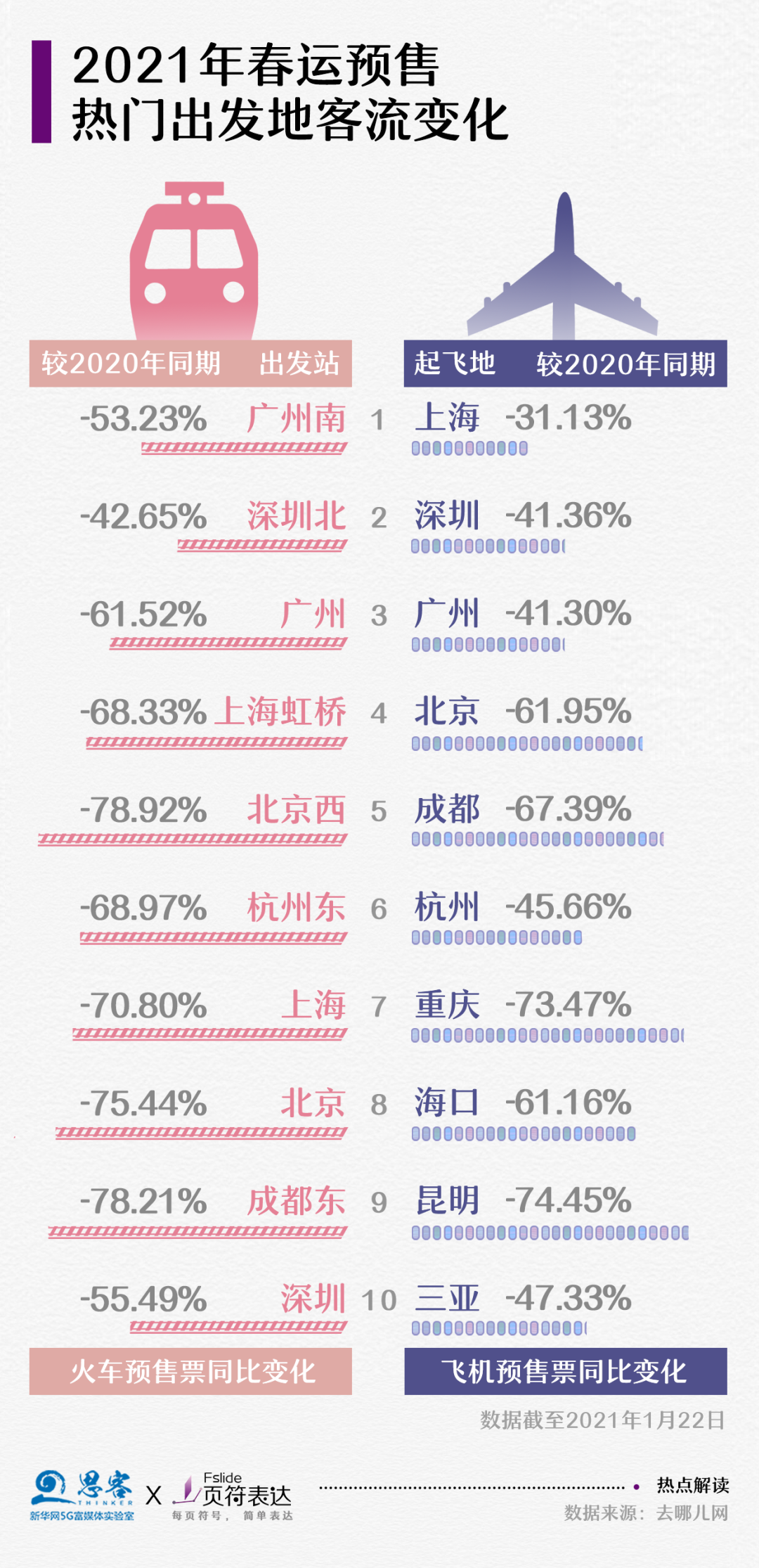2021年春運客流驟降,“就地過年”減少了春運期間人流遷徙。根據(jù)交通運輸部門預測,2021年全國春運期間將發(fā)送旅客17億人次左右,日均4000萬人次,比2019年下降四成多,比2020年增加一成多。