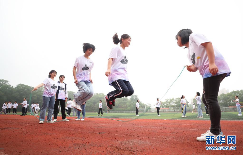 5月25日,湖南省衡陽(yáng)市衡陽(yáng)縣第一中學(xué)的高三學(xué)生在晨練中跳繩。