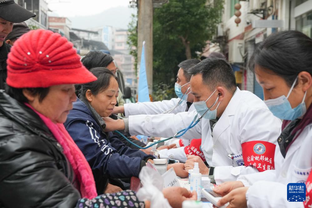 12月19日,在重庆市开州区义和镇,四川达州市开江县梅家乡卫生院同义和镇卫生院组成的“边界医疗卫生服务队”为当地群众开展义诊。