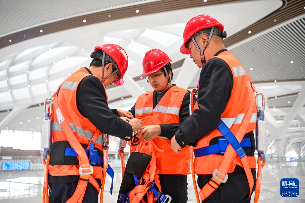 2月3日,鲁奇在重庆东站站房屋顶紧固螺栓。