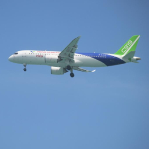 2月3日,一架中国商飞C919飞机在第十届新加坡航展首日进行飞行表演。