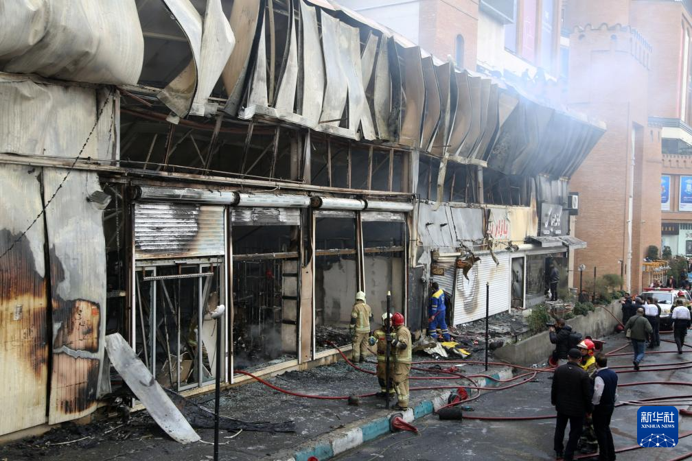 2月3日,在伊朗首都德黑兰,消防员在火灾现场工作。