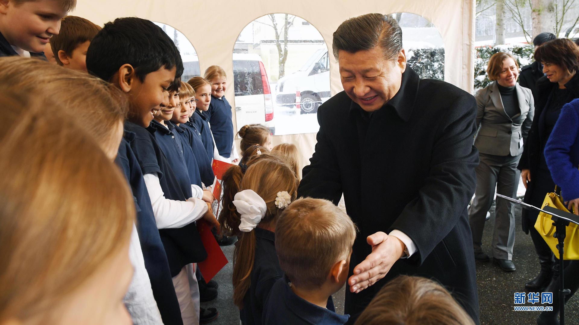 1月15日,國(guó)家主席習(xí)近平在瑞士聯(lián)邦主席洛伊特哈德陪同下,乘坐瑞士政府專列自蘇黎世前往瑞士首都伯爾尼。在專列行進(jìn)過程中,習(xí)近平和夫人彭麗媛受洛伊特哈德主席夫婦邀請(qǐng),在輕松愉快的氛圍中品茶暢談。這是習(xí)近平在伯爾尼克爾薩茨火車站觀看瑞士童聲合唱團(tuán)表演后,與合唱團(tuán)的小演員交流。 新華社記者饒愛民攝2017-01-16