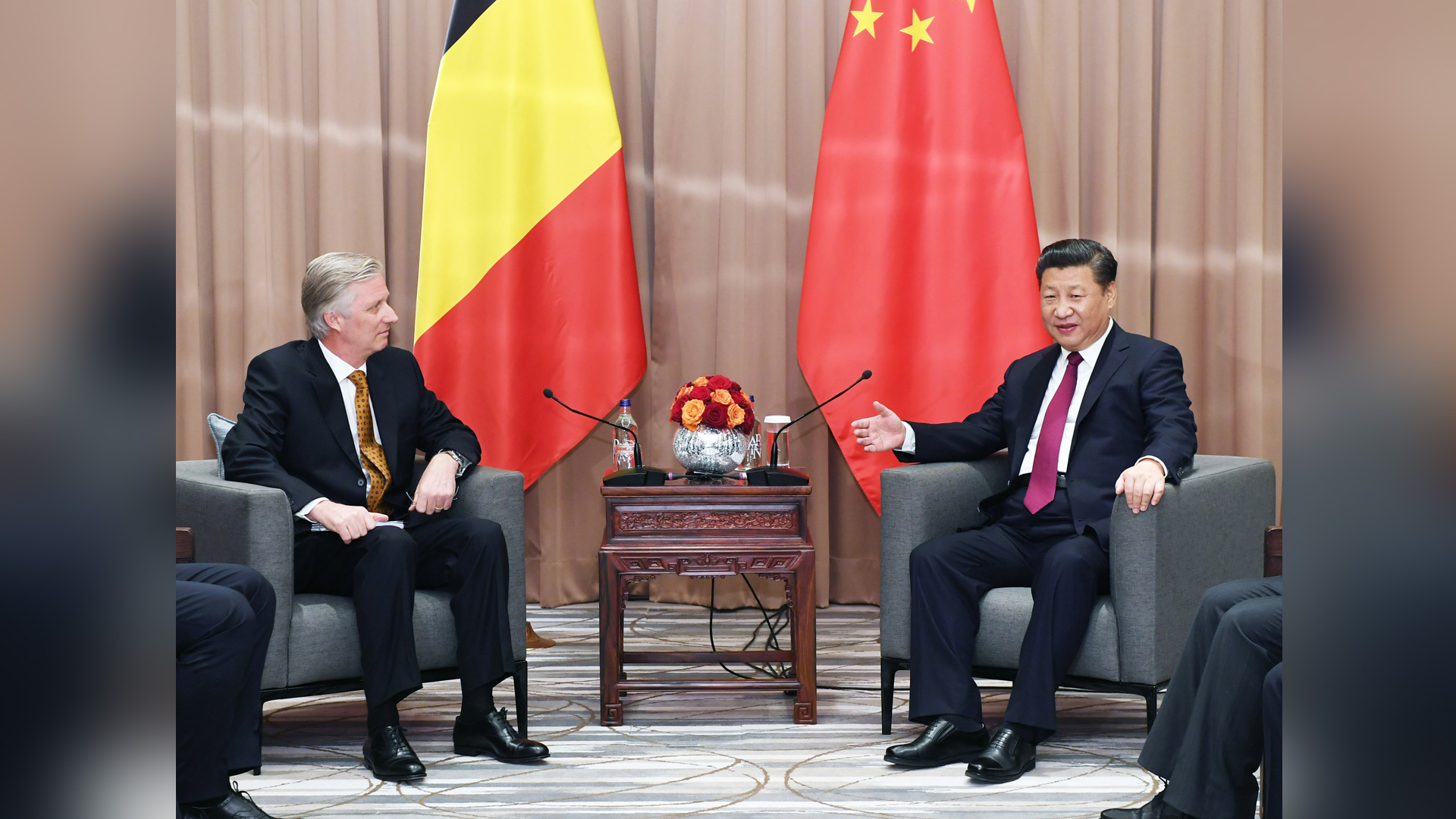 1月17日,國(guó)家主席習(xí)近平在瑞士達(dá)沃斯會(huì)見比利時(shí)國(guó)王菲利普。新華社記者 饒愛民 攝2017-01-18