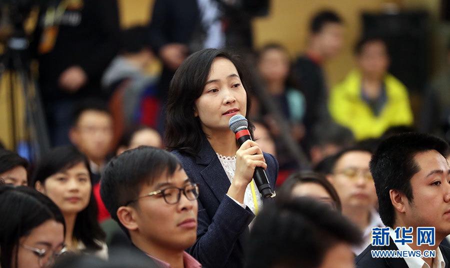 ??? 10月21日,十九大新聞中心舉辦記者招待會(huì),邀請中共中央統(tǒng)戰(zhàn)部常務(wù)副部長張裔炯、副部長冉萬祥,中共中央對外聯(lián)絡(luò)部副部長郭業(yè)洲介紹黨的統(tǒng)一戰(zhàn)線工作和黨的對外交往情況,并回答記者提問。圖為新華社記者提問。新華網(wǎng) 郝廣鵬攝