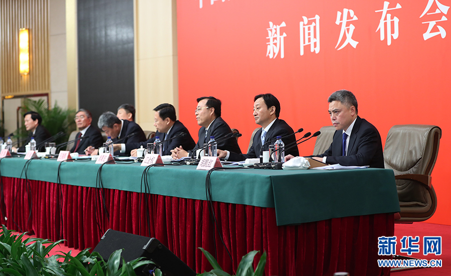 10月26日上午10:00,中國(guó)共產(chǎn)黨第十九次全國(guó)代表大會(huì)新聞發(fā)言人在梅地亞賓館二層新聞發(fā)布廳召開(kāi)專(zhuān)題新聞發(fā)布會(huì),請(qǐng)有關(guān)方面負(fù)責(zé)人解讀十九大報(bào)告,并回答記者關(guān)心的問(wèn)題。圖為新聞發(fā)布會(huì)現(xiàn)場(chǎng)。新華網(wǎng)?翟子赫 攝