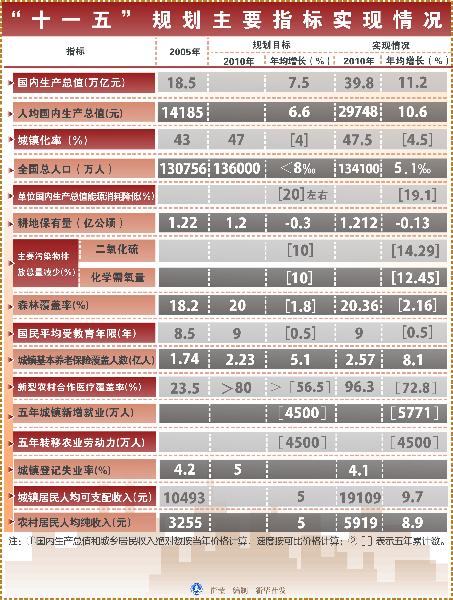 “十一五”規(guī)劃主要指標實現(xiàn)情況