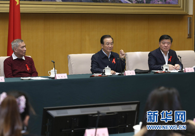 ????11月30日,國務(wù)院總理溫家寶在北京中南海與艾滋病感染者、艾滋病致孤兒童、上訪人員、醫(yī)務(wù)人員、科研人員、志愿者和有關(guān)國際組織代表座談。(來源:新華社記者 龐興雷 攝)