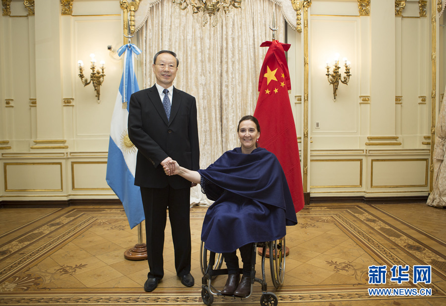 7月7日,中共中央書記處書記、全國政協(xié)副主席杜青林(左)在阿根廷首都布宜諾斯艾利斯會見阿根廷代總統(tǒng)兼參議長米切蒂。新華社發(fā)(馬丁·薩巴拉攝)