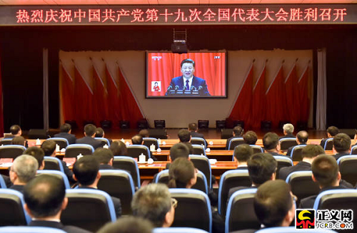 正義網(wǎng)北京10月18日電(記者王治國 徐日丹)今天上午,舉世矚目的中國共產(chǎn)黨第十九次全國代表大會在人民大會堂開幕。習(xí)近平總書記代表第十八屆中央委員會向大會作了題為《決勝全面建成小康社會 奪取新時代中國特色社會主義偉大勝利》的報(bào)告。最高人民檢察院組織機(jī)關(guān)全體黨員干部收聽收看了大會實(shí)況轉(zhuǎn)播,各內(nèi)設(shè)機(jī)構(gòu)和直屬事業(yè)單位在第一時間召開座談會,交流學(xué)習(xí)十九大報(bào)告心得體會。大家表示,要認(rèn)真學(xué)習(xí)貫徹黨的十九大精神,不忘初心,牢記使命,高舉中國特色社會主義偉大旗幟,忠誠履行法律監(jiān)督職責(zé),努力開創(chuàng)檢察事業(yè)新局面,為決勝全面建成小康社會,奪取新時代中國特色社會主義偉大勝利,實(shí)現(xiàn)中華民族偉大復(fù)興的中國夢貢獻(xiàn)檢察力量。