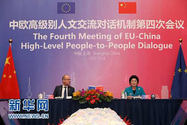 11月14日,國務(wù)院副總理劉延?xùn)|與歐盟委員會(huì)教育、文化、青年和體育委員瑙夫勞契奇作為機(jī)制雙方主席在上海共同主持中歐高級(jí)別人文交流對(duì)話機(jī)制第四次會(huì)議。新華社記者 劉穎 攝