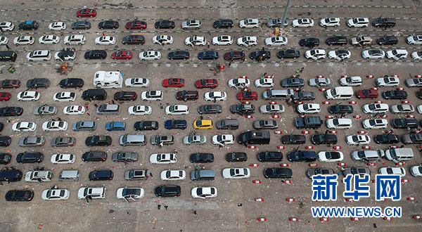 2月20日,大量過海車輛在海口秀英港等待過海。新華社記者 趙穎全 攝