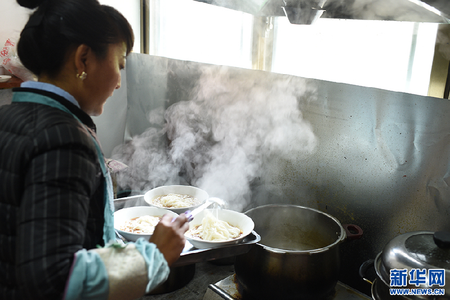 正在為客人煮面的尼瑪拉姆(5月12日 攝)。新華網(wǎng)記者 陳琳 攝