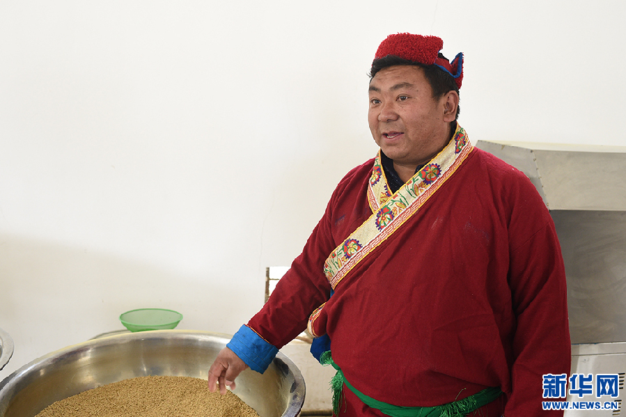 勒布溝特色產(chǎn)品農(nóng)牧民專業(yè)合作社負(fù)責(zé)人群增次仁向記者介紹情況(5月13日 攝)。新華網(wǎng)記者 陳琳 攝