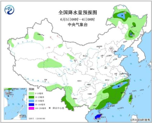 全國降水量預報圖(6月5日08時-6月6日08時)