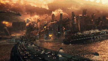這是電影中外星母艦襲擊地球的場(chǎng)景。