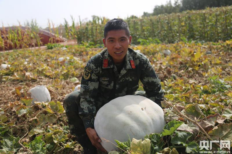 據(jù)中隊官兵介紹,由于當(dāng)?shù)貫辂}堿地,種樹種不活,他們便從其他地方一點點運來新泥土、施入馬糞牛糞改良土地。歷經(jīng)多年,如今,營區(qū)已是樹木成林,瓜果飄香。