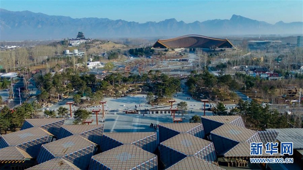 3月27日無人機(jī)拍攝的北京世園會(huì)園區(qū)。新華社記者 馬曉冬 攝