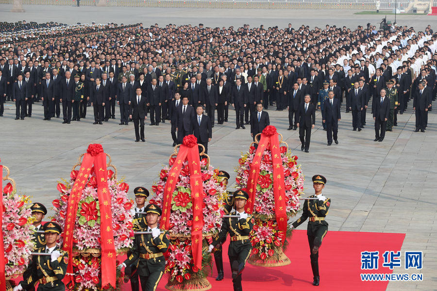 9月30日上午,習(xí)近平、李克強(qiáng)、栗戰(zhàn)書、汪洋、王滬寧、趙樂際、韓正、王岐山等黨和國家領(lǐng)導(dǎo)人來到北京天安門廣場,出席烈士紀(jì)念日向人民英雄敬獻(xiàn)花籃儀式。 新華社記者 龐興雷 攝