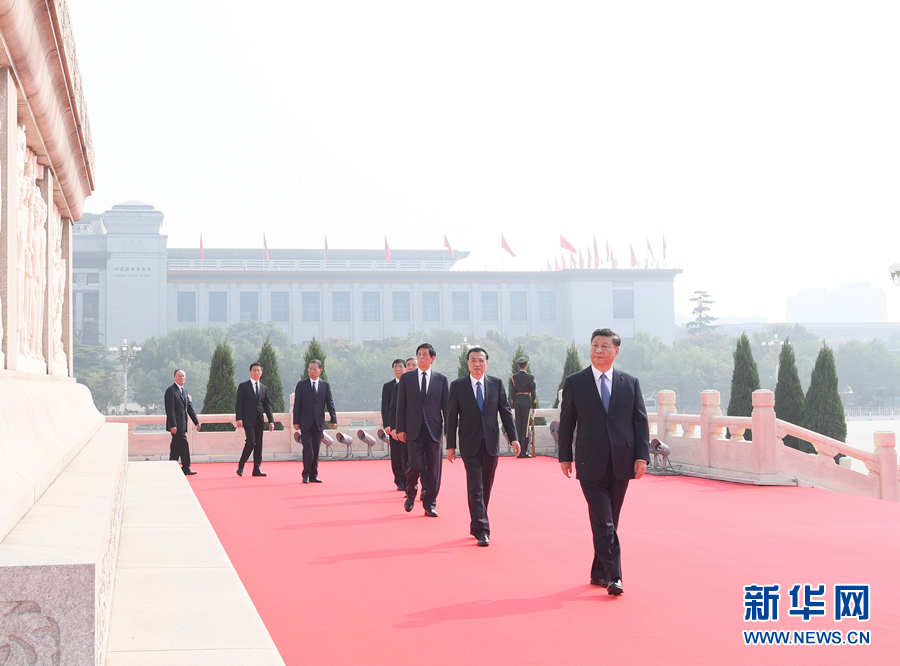 9月30日上午,習(xí)近平、李克強(qiáng)、栗戰(zhàn)書、汪洋、王滬寧、趙樂際、韓正、王岐山等黨和國家領(lǐng)導(dǎo)人來到北京天安門廣場,出席烈士紀(jì)念日向人民英雄敬獻(xiàn)花籃儀式。儀式前,習(xí)近平等來到毛主席紀(jì)念堂瞻仰毛澤東同志遺容。新華社記者 鞠鵬 攝