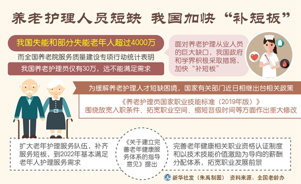 新華社北京11月5日電(記者田曉航)來(lái)自全國(guó)老齡辦的數(shù)據(jù)顯示,我國(guó)失能和部分失能老年人超過(guò)4000萬(wàn),而全國(guó)養(yǎng)老院服務(wù)質(zhì)量建設(shè)專(zhuān)項(xiàng)行動(dòng)統(tǒng)計(jì)表明,我國(guó)養(yǎng)老護(hù)理員僅有30萬(wàn),遠(yuǎn)不能滿(mǎn)足需求。面對(duì)養(yǎng)老護(hù)理從業(yè)人員的巨大缺口,我國(guó)政府和學(xué)界積極采取措施,加快“補(bǔ)短板”。