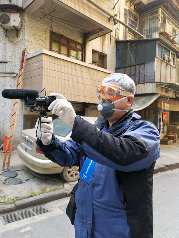 2月5日,才揚(yáng)在武漢采訪(fǎng)時(shí)的工作照。