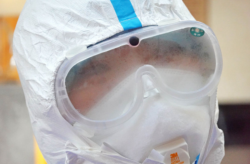 每次出門(mén)采訪(fǎng)都如臨大敵:先換好外出的衣裳、戴好醫(yī)用手套、戴好護(hù)目鏡,然后再小心翼翼地在臉上加上一個(gè)或兩個(gè)口罩,在門(mén)口換上出門(mén)的鞋,最后再背上采訪(fǎng)設(shè)備——每次做完這些的時(shí)候,作為胖子的我身上已經(jīng)開(kāi)始冒汗并且氣喘吁吁。如果要去醫(yī)院采訪(fǎng),有時(shí)候還要再穿上一件防護(hù)服。這樣的裝備,出門(mén)走一圈其實(shí)已經(jīng)很難受了,而我還要隔著不斷產(chǎn)生霧氣的護(hù)目鏡拍照,要不斷地移動(dòng)、尋找最好的拍攝角度和位置,采訪(fǎng)的時(shí)候更要記下一個(gè)個(gè)口罩后面的名字、故事......這樣的采訪(fǎng)狀態(tài)對(duì)我而言,從未曾經(jīng)歷過(guò)——多年前,我曾在利比亞做過(guò)戰(zhàn)地記者,也曾被武裝分子用槍指著腦袋,但這次在武漢,我不知道那些危險(xiǎn)的“敵人”究竟藏在何方,也許就在無(wú)處不在的空氣里!