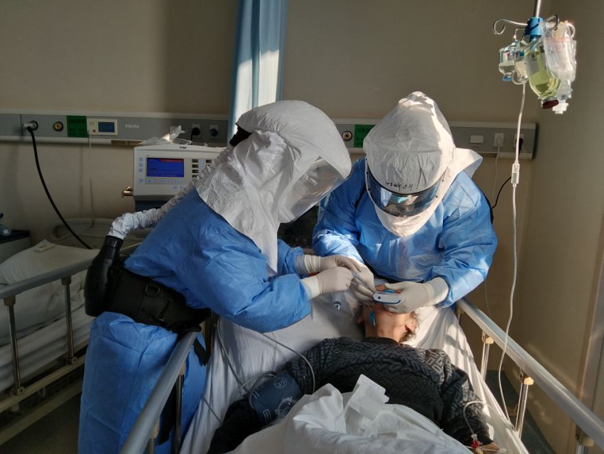 其次,因?yàn)樾鹿诜窝椎闹匕Y病人耐受時(shí)間短,對(duì)醫(yī)護(hù)人員也必須減少暴露時(shí)間,平常3-5分鐘的插管時(shí)間,現(xiàn)在必須在兩分鐘內(nèi)完成。看到病人痛苦無(wú)助的樣子,凌肯沒有時(shí)間害怕,在陳向東的指導(dǎo)下,他迅速冷靜,與同事兩人,一個(gè)推麻藥,一個(gè)負(fù)責(zé)插管。整個(gè)過程麻利干脆,用時(shí)90秒。除去60秒打麻藥的過程,真正插管只用了30秒。