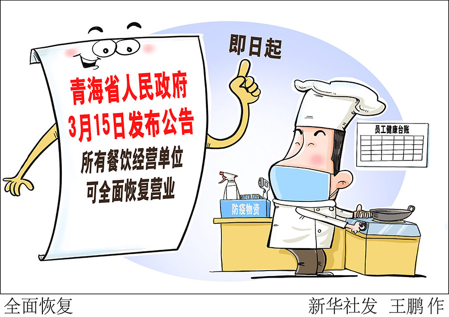 新華社西寧3月16日電(記者央秀達珍)青海省人民政府15日發(fā)布公告稱,全省所有餐飲經(jīng)營單位(含酒店、餐館、早餐店、夜宵店等),即日起可全面恢復營業(yè)。