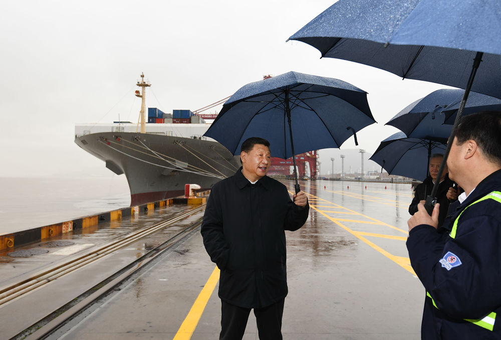 從新華社發(fā)出的現(xiàn)場(chǎng)照片看,總書(shū)記在寧波舟山港穿山港區(qū)碼頭上沒(méi)有佩戴口罩?!?