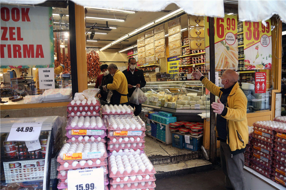 4月22日,安卡拉市民在購(gòu)物,幾乎都戴了口罩。新華社發(fā)(穆斯塔法·卡亞攝)