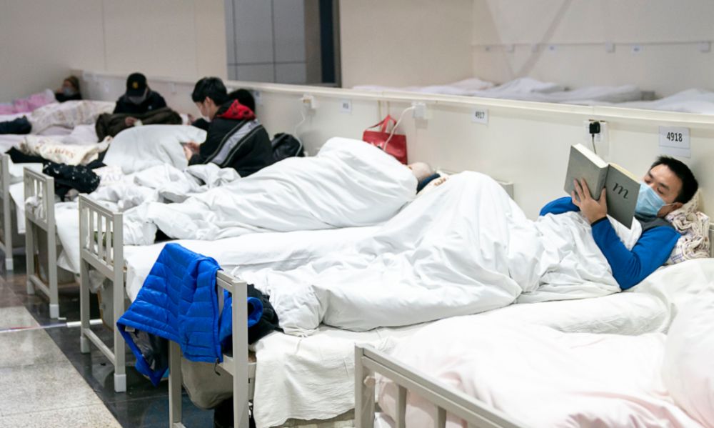 2月5日晚,一名患者在武漢“江漢方艙醫(yī)院”內看書。新華社記者熊琦攝