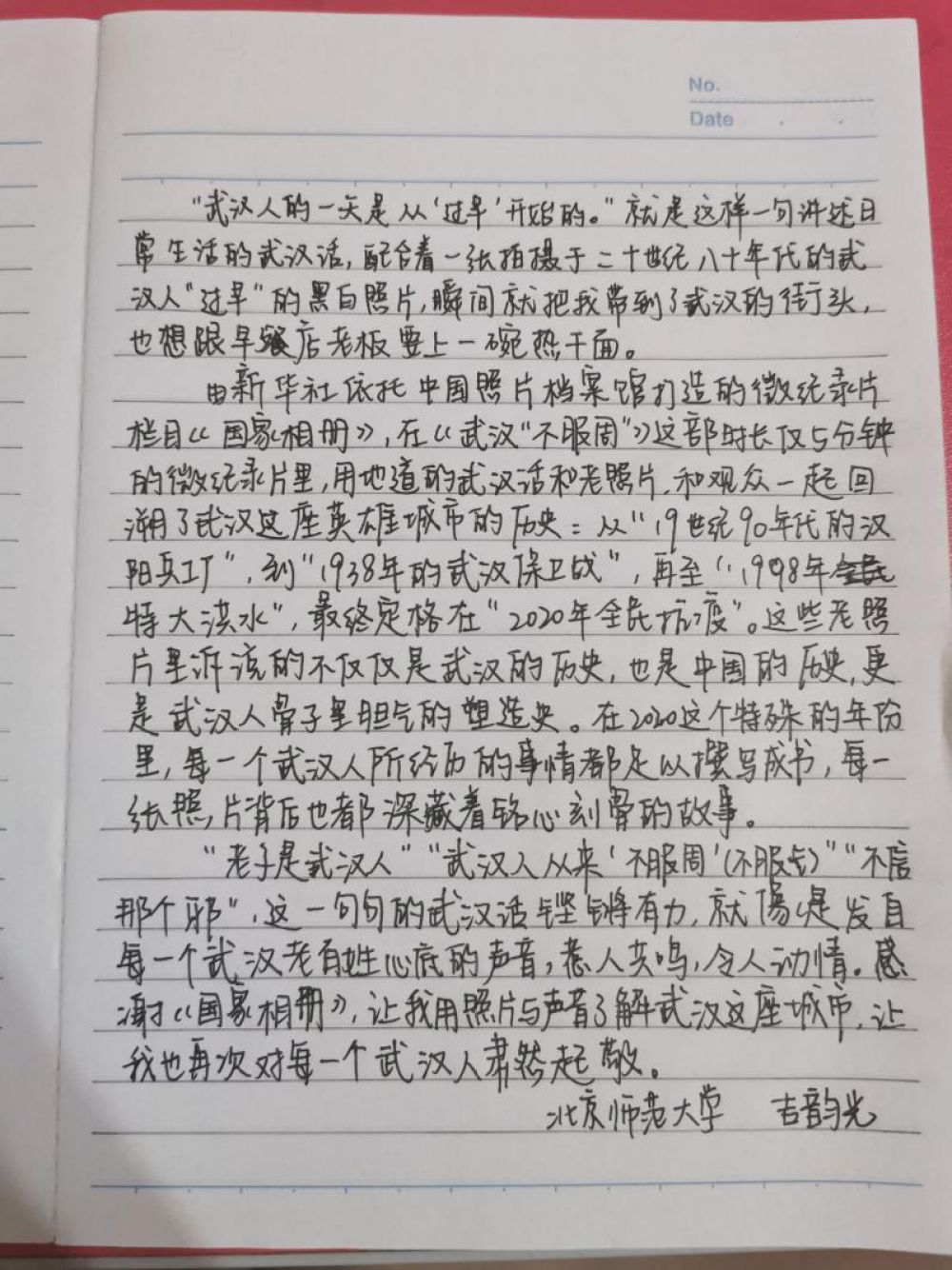 ↑北京師范大學(xué)學(xué)生劉曉航的觀后感