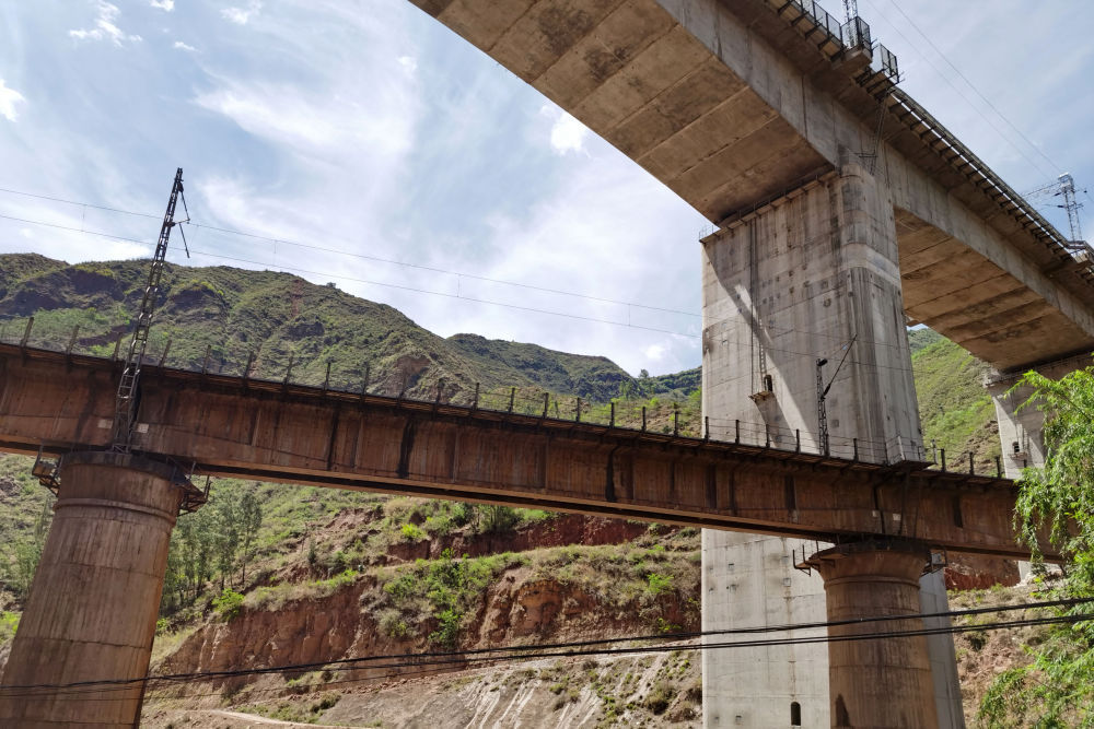 這是采用“轉(zhuǎn)體施工法”建設(shè)的大樹村龍川江三線大橋(上)一景,該橋單體轉(zhuǎn)體重量7350噸,總重量14700噸(6月23日攝)。新華社記者 王長山 攝