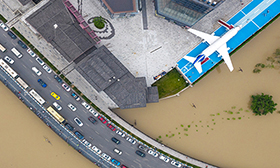 8月19日早晨,應(yīng)急人員在珠海情侶路搶險作業(yè)。新華社發(fā)